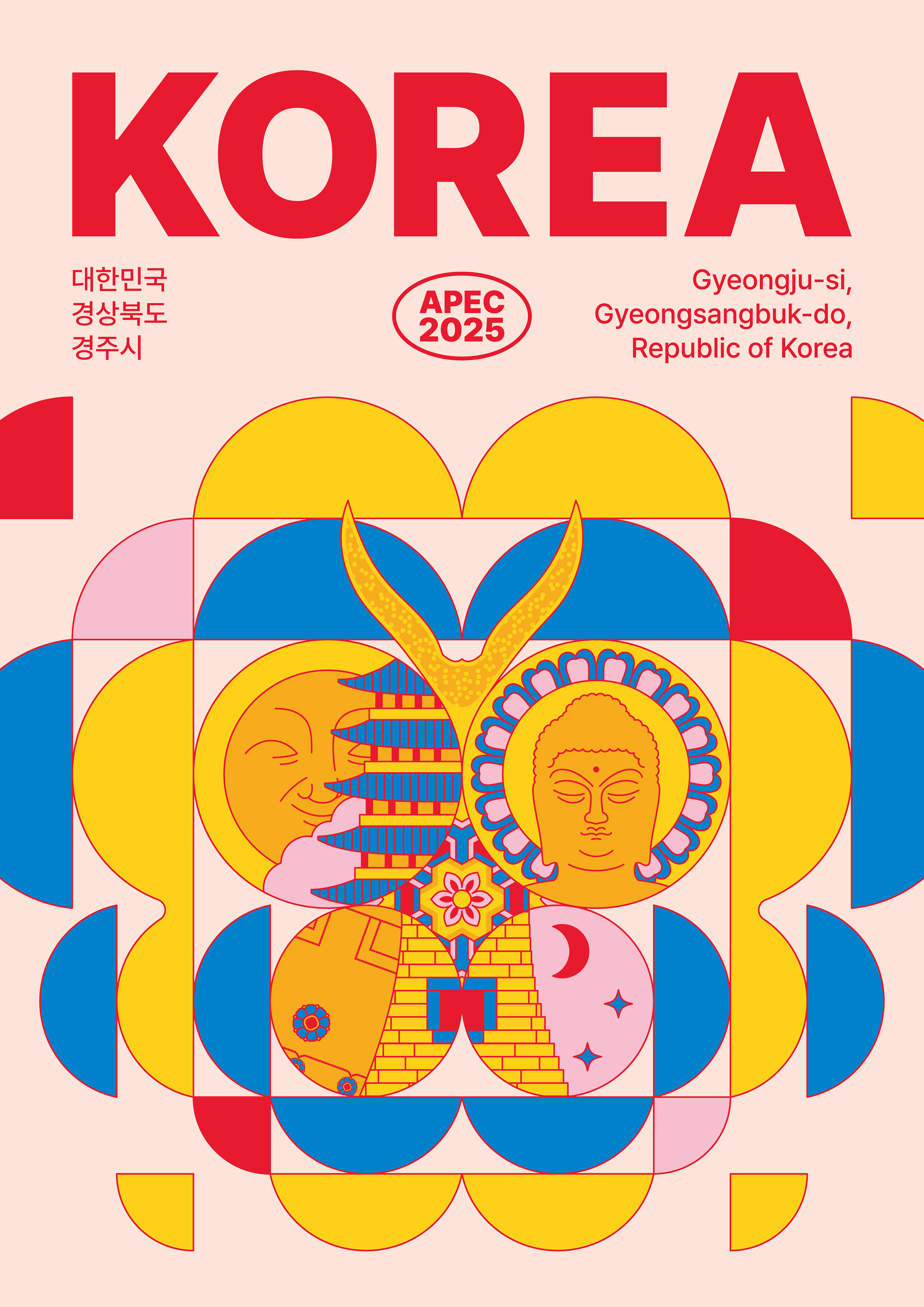 This is a support poster celebrating the successful hosting of the 2025 APEC Summit, which will be held in Gyeongju, Gyeongsangbuk-do, Republic of Korea. The poster uses the “butterfly” as a metaphor—the symbol of this year’s APEC—to convey the idea that a small flutter of wings can create ripples that spread across the world. It embodies the hope that in our interconnected world, prosperity will blossom through these waves of connection. Go Korea!